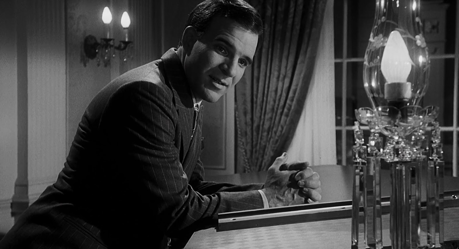 Grant dans Soupçons qui partage un plan avec Steve Martin.