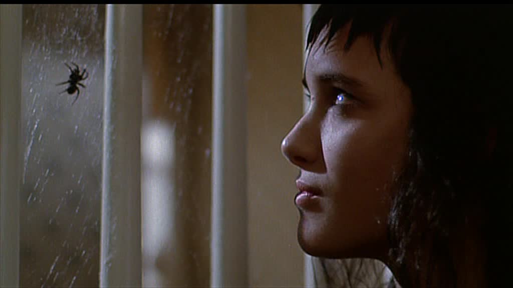 De la même manière, Beetlejuice ne prolonge pas le suspense pour qu'Adam et Barbara se rendent compte, miroir à l'appui où ils ne voient pas leur reflet, qu'ils sont devenus des fantômes. Adam tente de sortir de la maison. Il découvrira que l'extérieur est désormais un vaste désert de sable peuplé d'un serpent qui cherche à l'engloutir. Un serpent rayé en animation image par image, à l'ancienne. Pourquoi vouloir s'enfuir à toutes jambes ? Parce qu'une nouvelle famille a acheté leur maison et s'y installe.